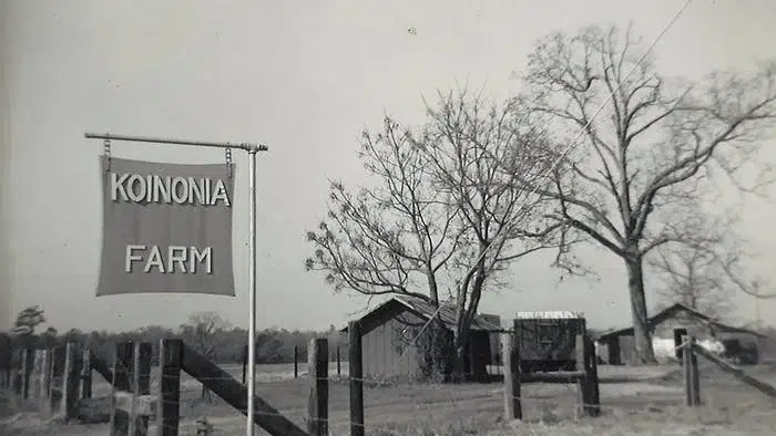 Koinonia, pronounced koi-no NEE ya, was founded in 1942 as a Christian community by Jordan his wife, Florence, and Martin and Mabel England. England and Jordan were Baptist ministers who sought to put their faith to action, naming their new, intentional community after the Greek word meaning a deep and abiding fellowship, a common bond. They sought to teach responsible farming techniques so people could sustain themselves.