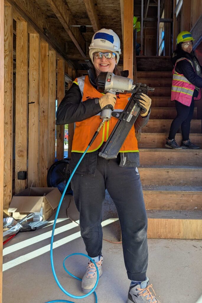 She’s been onsite to see the community come together since October, she said, and learned how to do framing, hang doors, install baseboards and door casings, and fix subflooring. One of the most memorable days, she said, was helping a neighbor raise one of the walls in their home.