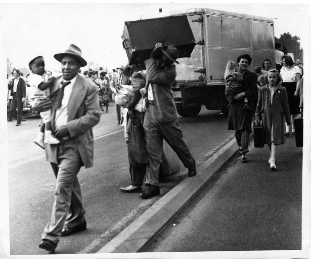 Soon after the war, resentment in the White community of the underserved “ghetto,” still home to 20,000 people, began to swell. According to Dr. Gibson, City leaders were eager to dismantle the town, “calling it ‘troublesome’ and ‘blighted’ because of the racially mixed population and ‘crackerbox’ housing construction.” Then suddenly at 4:17pm on May 30, 1948, a levy holding the Columbia River gave way, unleashing torrents of flood water that quickly submerged the city, uprooting weak grounds and dismantling everything in sight. In sum, 15 people lost their lives and 5,300 families (1,000 of whom were Black) were forcibly displaced.