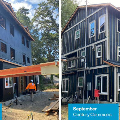 The seasons are changing! As autumn arrives, wetter weather always presents some challenges. Here’s what’s happening at our build sites: CENTURY COMMONS (Hillsboro) We recently hosted our inaugural Frame a Future campaign celebration at Century Commons! Attendees got to peek behind the walls at several sustainability and accessibility features. Keep an eye on our social media […]