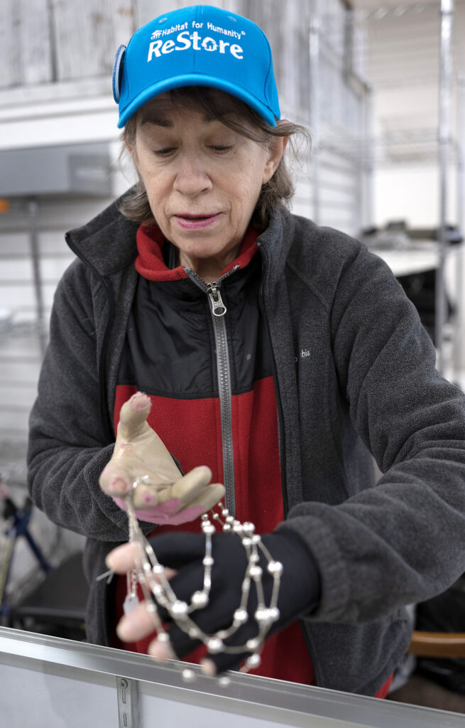 When she retired and moved to Gresham, she resumed her volunteering with the Gresham ReStore, where, as a regular volunteer, she created a popular curated jewelry department from donated items.