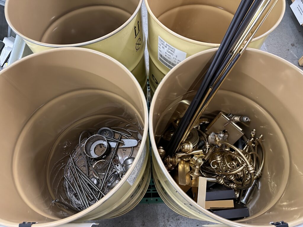 A faucet, for example, could have five different metals inside of it: there’s copper tubing attached to brass fittings, and the neck of the faucet might be zinc or brass. When you clean and separate all these individual metals, they can be sold by the pound, which adds up quickly!