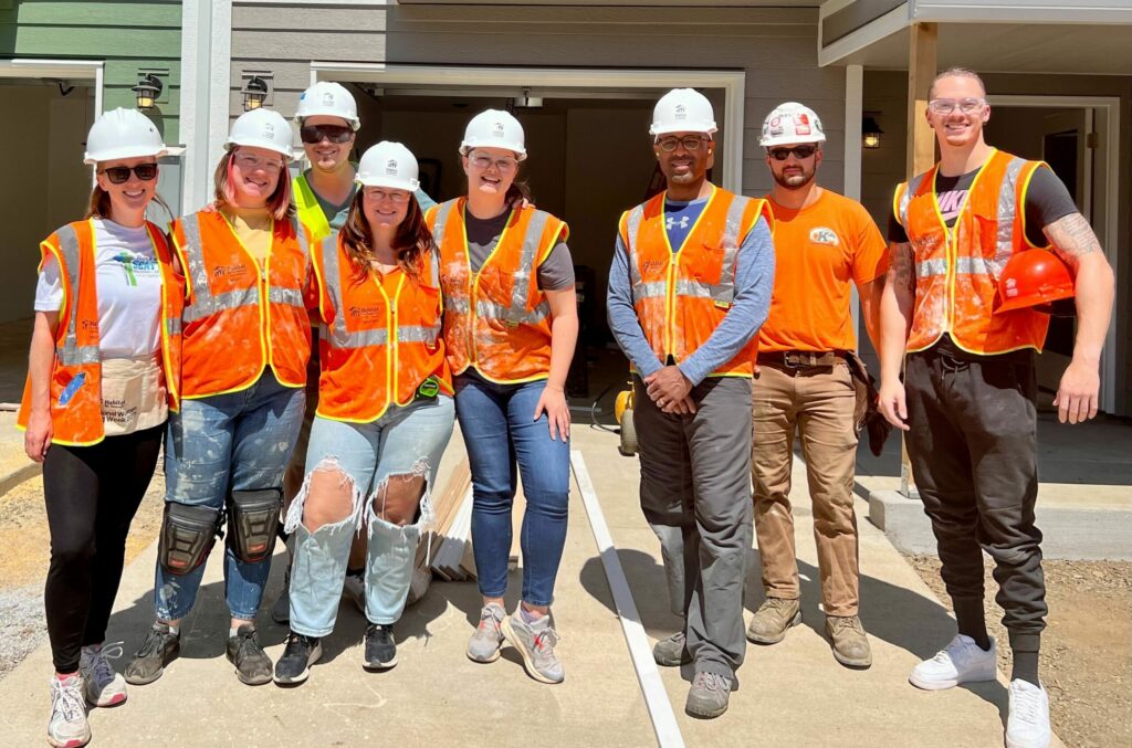 Christopher Brown, third from right, joins his Ambassador Council working at the Alder Commons build site in Hillsboro.