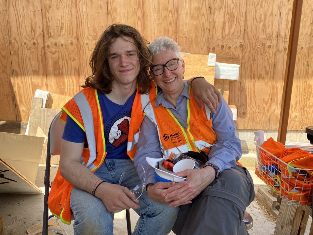 Sandi Gallagher and her son, Spencer, volunteer at Habitat’s Foster Commons community.