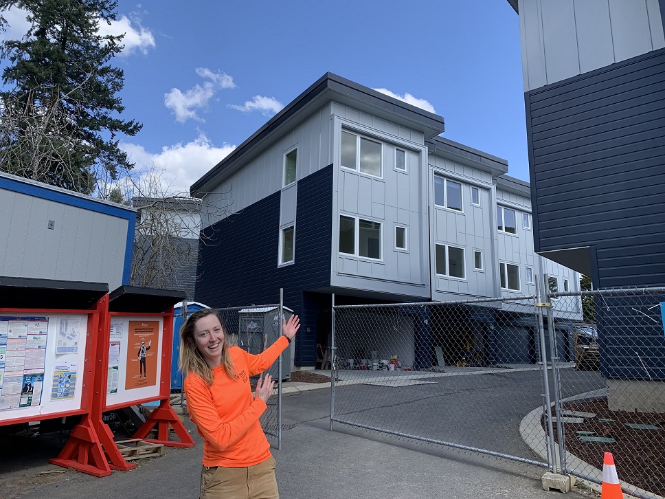 Work continues on landscape grading, painting doors, floor finishing and putting up the remaining siding. The team anticipates completing all the units by August, so if you have free time this summer, please consider volunteering to get this community over the finish line. While most sites are only open to volunteers on weekdays, Alder Commons also engages volunteers on Saturdays. If you’re interested in joining the community of volunteers, register here.