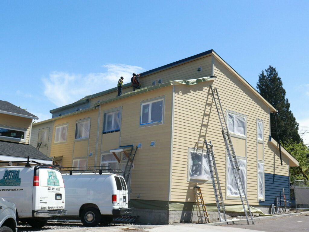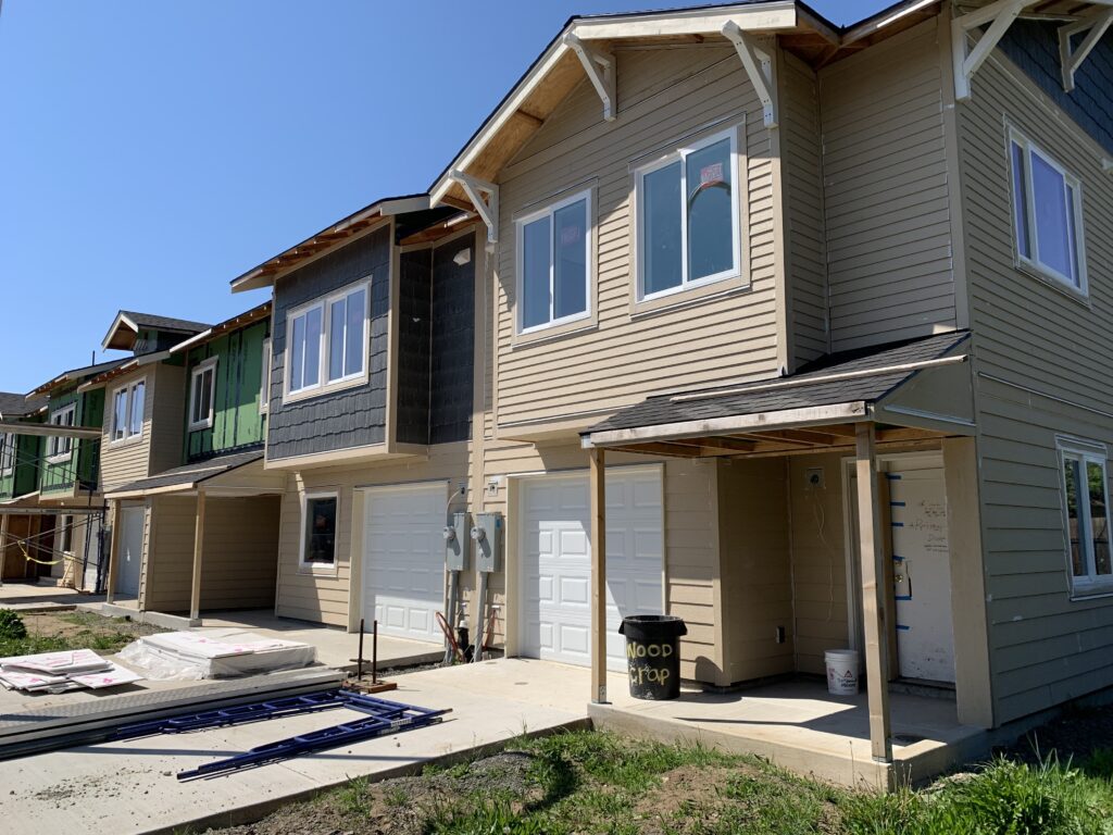 Big moves are underway at our 8-home community in Hillsboro known as Alder Commons. The paving is complete, painting, stair construction and siding installation are all underway. The flooring has gone in and the porches are taking shape. And the first certificate of occupancy has already come through.