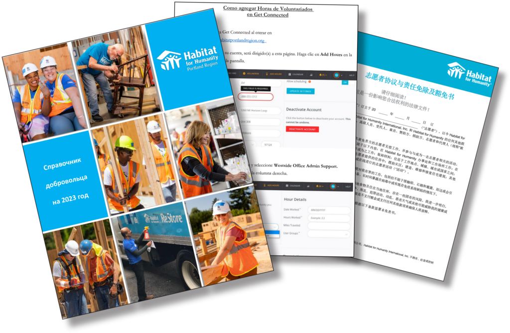 Click here for Habitat’s Volunteer Manuals in Spanish, Russian, and simplified Chinese.