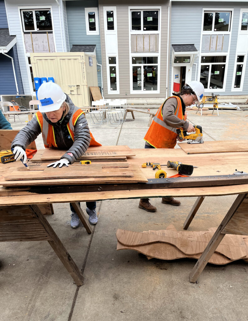 Participants range from experienced women who just want to add to their tool belt of skills, to women who have never swung a hammer before. It’s also a way to build community — and for some, a way to meet their future neighbors.