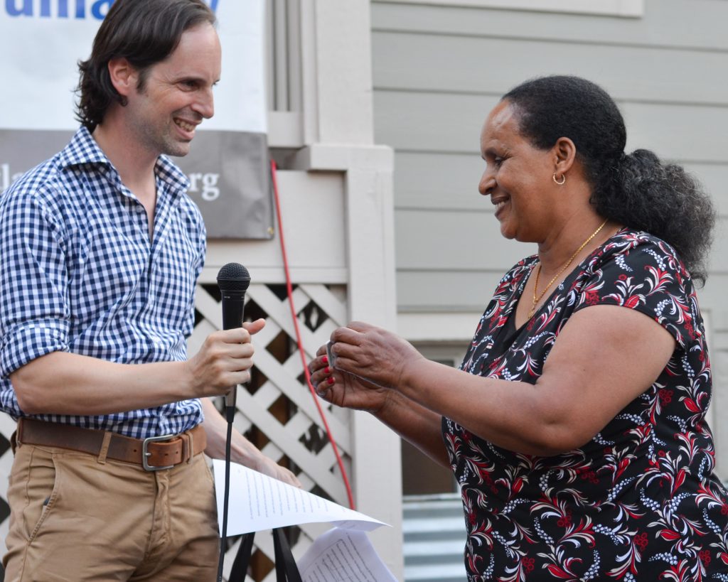 While Teberih commuted to her job at the Oregon Health & Science University where she worked as a housekeeper, she passed by the Habitat office on Killingsworth Street. The logo design of three stick figures celebrating the roof over their heads and the words ‘Habitat for Humanity’ piqued her attention. Her dream for the longest time was to buy her own house so that her children could have a place to come back to once they were older. One day, she called the phone number listed on the Habitat website, which led her to qualify and apply for the homeownership program. In 2015, she partnered with Habitat and built her own house from the ground up in the cultural hub of Southwest Portland.