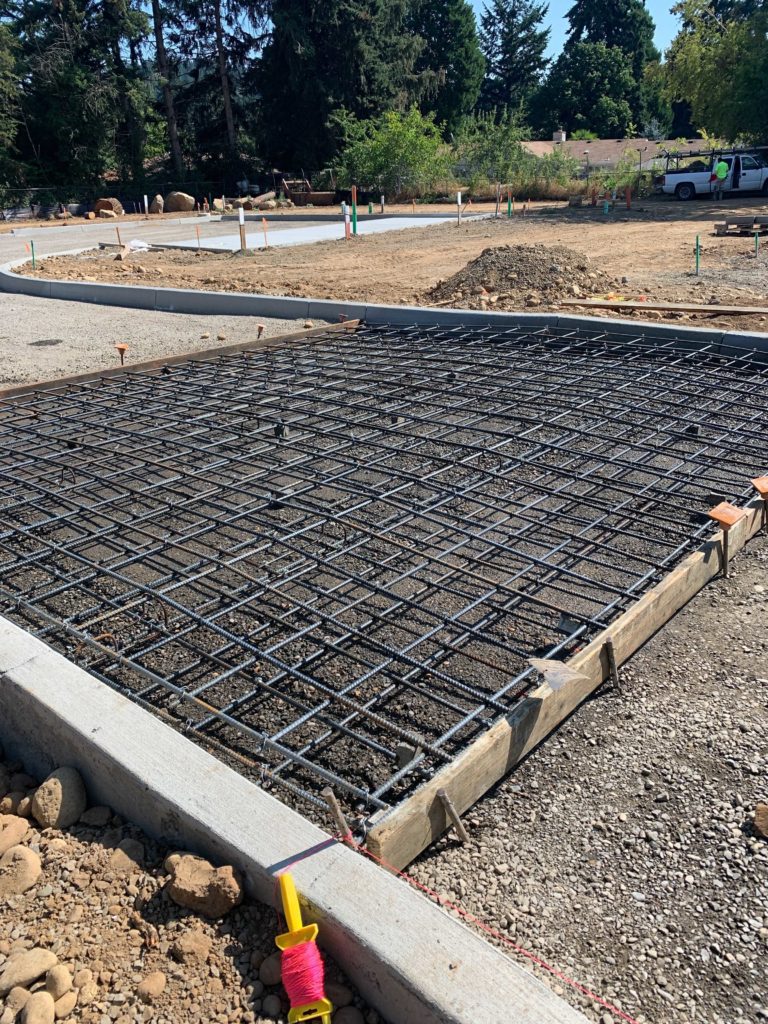 We have completed a lot of underground work on this 40-home community located in the Powellhurst Gilbert neighborhood of SE Portland. We’ve installed vaults and conduits, water and storm pipes, and leveled the grounding in what’s known as rough grading. Above ground, crews kicked off concrete work by paving road curbs, building retaining walls to hold back dirt and debris, installing a concrete parking lot section, and completing asphalt work on the public street. Moving forward, construction crews will begin pouring foundation in preparation for the construction and framing of the homes.