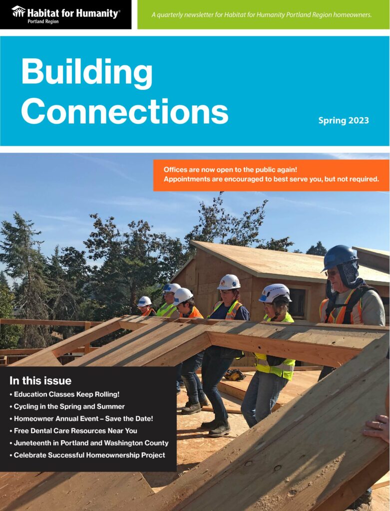 Not getting Building Connections in the mail? Please email shaney.broome@habitatportlandregion.org and we will help.